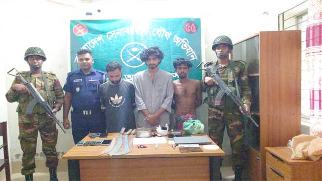 আটককৃতরা হলেন—যাদবপুর গ্রামের মৃত জাকির মোল্লার ছেলে আকাশ মোল্লা, আসাদ শেখের ছেলে আলী শেখ ও মৃত জাহিদ ভূইয়ার ছেলে হায়দার ভূইয়া। অভিযানে তাদের কাছ থেকে অনলাইন প্রতারণায় ব্যবহৃত ১টি ল্যাপটপ, ১টি ডিজিটাল ভয়েস চেঞ্জার, ১১টি মোবাইল ফোন, ২১টি সিমকার্ড, একটি বিদেশি ৩০০ সিসি মোটরসাইকেল, গাঁজা, ইয়াবা, ইয়াবা ও গাঁজা সেবনের বিভিন্ন সরঞ্জাম এবং দেশীয় অস্ত্র উদ্ধার করা হয়েছে।