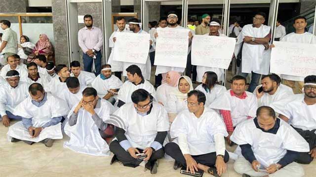 এ সময় তারা ‘বদলির নামে প্রহসন মানি না’, ‘গোলামীর অধ্যাদেশ মানি না’, ‘বদলির নামে জুলুমবাজী বন্ধ করতে হবে’ ইত্যাদি স্লোগান দেন।