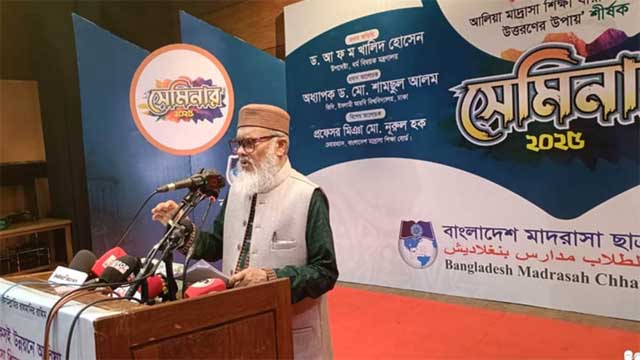 বুধবার (৯ জুলাই) দুপুরে ঢাকার আইডিইবি মিলনায়তনে ‘টেকসই উন্নয়নে আলিয়া মাদ্রাসা শিক্ষা ধারা: চ্যালেঞ্জ ও উত্তরণের উপায়’ শীর্ষক সেমিনারে প্রধান অতিথির বক্তৃতায় তিনি এ কথা বলেন। বাংলাদেশ মাদরাসা ছাত্রকল্যাণ পরিষদ এ সেমিনারের আয়োজন করে।