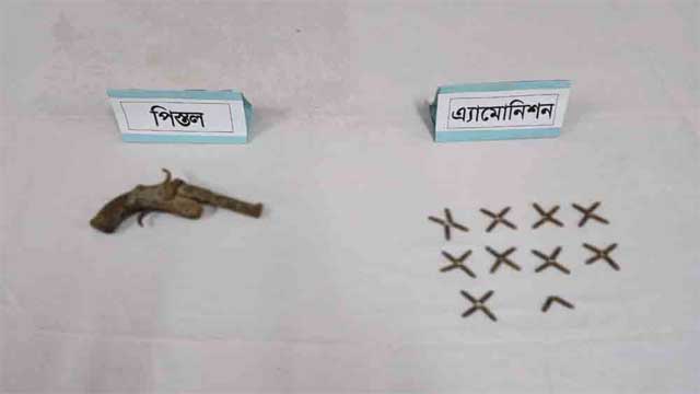 জানা যায়, গোপন সংবাদের ভিত্তিতে অভিযান চালানো হয় শিবপুর গ্রামের জাকের গাইনের ছেলে আলম গাইনের বাড়িতে। যৌথ বাহিনী অভিযান চালিয়ে তার ঘরের সামনে ধানের গোলার ভেতর থেকে অস্ত্র ও গুলি উদ্ধার করে।
