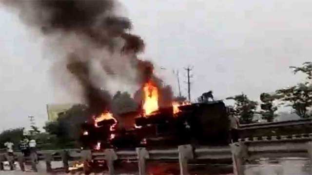 ঢাকা-মাওয়া এক্সপ্রেসওয়েতে মুরগি বহনকারী পিকআপ ভ্যানের গিয়ার বক্সে আগুন লেগে ব্যাপক ক্ষয়ক্ষতি ও যানজটের সৃষ্টি হয়।