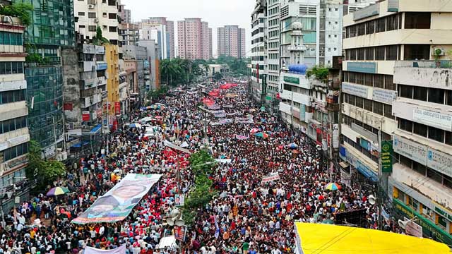 বুধবার (৬ আগস্ট) বিকেল ৪টা ৪৫ মিনিটে বিএনপির কেন্দ্রীয় কার্যালয় নয়াপল্টনের সামনে থেকে এ শোভাযাত্রা শুরু হয়।