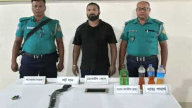 একটি পাইপগান ও দুই রাউন্ড শটগানের গুলিসহ জয়নাল আবেদীন জনি (৪০) নামের এক যুবককে আটক করেছে যৌথ বাহিনী। বুধবার (৬ আগস্ট) দিবাগত গভীর রাতে খুলনা মহানগরীর সদর থানাধীন পূর্ব বানিয়াখামার মেইন রোড থেকে তাকে আটক করা হয়। আটক জনি ওই এলাকার আশরাফ আলীর ছেলে।