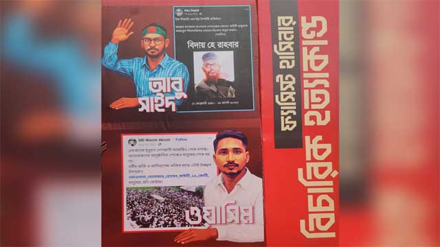 শহীদ আবু সাঈদ ও শহীদ ওয়াসিমের সেই পোস্ট দুটি ঢাকা বিশ্ববিদ্যালয়ের (ঢাবি) টিএসসিতে আয়োজিত চিত্র প্রদর্শনীতে স্থান দিয়েছে ছাত্রশিবির।