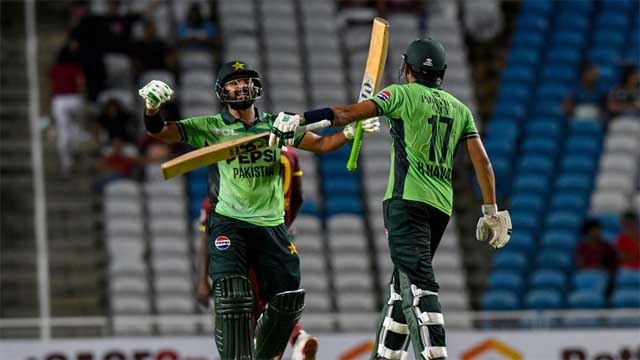 ওয়েস্ট ইন্ডিজ প্রথমে ব্যাট করে তিন ব্যাটসম্যানের হাফসেঞ্চুরিতে ভর করে ২৮০ রান তোলে। পাকিস্তানের স্পিনাররা মাঝের ওভারে রান চেপে ধরেন, আর শেষ দিকে শাহীন শাহ আফ্রিদি (৪-৫১) ও নাসিম শাহ (৩-৫৫) মিলেই স্বাগতিকদের অলআউট করেন।