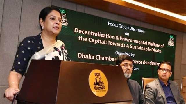 আজ শনিবার ঢাকার মতিঝিলে ঢাকা চেম্বার অব কমার্স অ্যান্ড ইন্ডাস্ট্রি (ডিসিসিআই) অডিটোরিয়ামে আয়োজিত ফোকাস গ্রুপ ডিসকাশন (এফজিডি) শীর্ষক ‘ডি-সেন্ট্রালাইজেশন অ্যান্ড এনভায়রনমেন্টাল ওয়েলফেয়ার অফ দ্য ক্যাপিটাল: টুয়ার্ডস আ সাসটেইনেবল ঢাকা’ অনুষ্ঠানে প্রধান অতিথির বক্তব্যে তিনি এ কথা বলেন।
