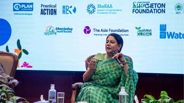 তিনি বলেন, আমাদের জলবায়ু পরিবর্তন একটা বাস্তবতা। সেখানে যদি আমি উন্নয়নকে টেকসই করতে চাই তাহলে জলবায়ু পরিবর্তনের ঝুঁকিতে থাকা মানুষের জন্য ইনভেস্টমেন্ট না বাড়িয়ে কিন্তু আমি আমার উন্নয়নকে টেকসই করতে পারবো না। আজকে এত বড়ো একটা পদ্মা সেতু আমাদের হলো, হঠাৎ করে জাজিরাতে ভাঙন ধরা পড়ল, ওই ভাঙন আসলে প্রায় ৩০০ কোটি টাকা মতো ব্যয় না করে কোনোভাবেই প্রতিহত করা সম্ভব না। কারণ যতই রিভারকে ট্রেনিং করেন, তার কিন্তু একটা সীমানা আছে।