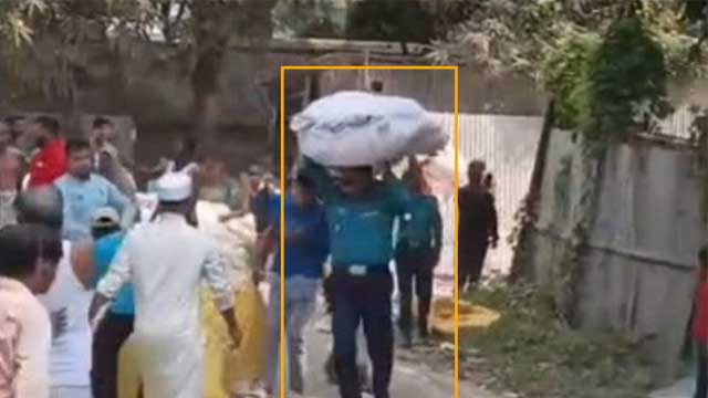 আগুন লাগার পর ধোঁয়ার কুণ্ডলি আর আতঙ্কের মধ্যেই ওসি মো. খালিদ উদ্ধারকাজে ঝাঁপিয়ে পড়েন। তাকে বস্তা মাথায় নিয়ে উদ্ধার করতে দেখে আশপাশের মানুষও উদ্ধারকাজে যোগ দেন।
