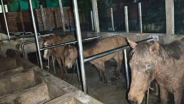 গাজীপুরের কাপাসিয়া উপজেলার একটি পরিত্যক্ত খামার থেকে ঘোড়ার মাংস জব্দ করেছে পুলিশ। এ ছাড়া জবাইয়ের জন্য অপেক্ষমাণ ১০টি ঘোড়াকে জীবিত উদ্ধার করা হয়েছে। গতকাল শুক্রবার দিবাগত রাত তিনটার দিকে উপজেলার দুর্গাপুর ইউনিয়নের মাশক গ্রামে এ অভিযান চালানো হয়।